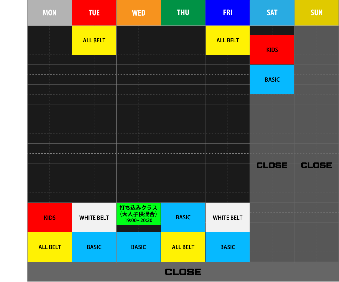 ※ 臨時休館日に関しては、当サイト・公式SNSや道場で事前にお知らせ致します。